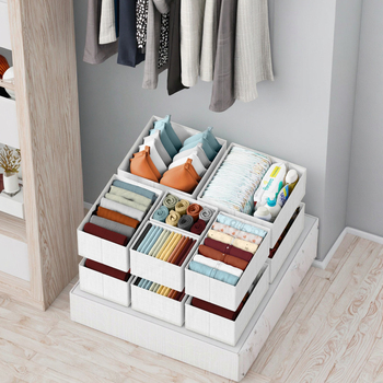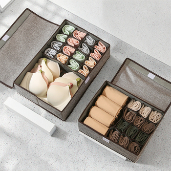 Modern yüksek kaliteli keten kumaş dolap çekmece organizatör dikdörtgen saklama kutusu bölünmüş uzay giysi iç çamaşırı sutyen depolama için